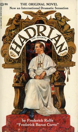 Hadrian the Seventh, Rolfe's first novel (sometimes attributed to the pseudonym Baron Corvo), is a "romance" that reflects its author's life and work. It tells the story of George Arthur Rose, a hack writer and minor priest, who, through bizarre but semi-plausible ecclesiastical vicissitudes, becomes elected Pope. "The previous English pontiff," he declares, "was Hadrian the Fourth. The present English pontiff is Hadrian the Seventh. It pleases us; and so, by Our own impulse, We command."