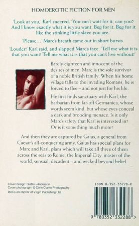 Barely eighteen and innocent of the desires of men, Marc is the sole survivor of a noble British family. When his home village falls to the invading Romans, he is forced to flee – and not just for his life. He first finds sanctuary with Karl, the barbarian from far-off Germanica, whose words seem kind, but whose eyes conceal a dark and brooding menace. Is it only Marc's safety that Karl is interested in? Or is it something much more? And then they are captured by Gaius, a general from Caesar's all-conquering army. Gaius has special plans for Marc and Karl, plans which will take all three of them across the seas to Rome, the Imperial City, master of the world, sensual, decadent – and wicked beyond belief.