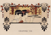 The story is bathed in an ethereal atmosphere, in which the raw realities of love seem far away. Only a few allusions evoke sensuality (I won't go so far as to say sexuality, the word seems out of place in Fersen's imaginary world!): "Under the subtle fingers of the pocillators, Milès in ecstasy closed his beautiful eyes. During the three months since he had been subjected to purifications, and had learned to face the aeropage the singing of verses and dancing, never before had the caresses of slaves been so sweet. He had been anointed with precious oils and spikenards from Syracuse. Her eyelids fluttered like weary wings, and her radiant body was supple, wavy, and tender—like pink seaweed." Let us listen to Scopas, the architect who is dying of love for the handsome Milès. His love also knows how to express itself as a sensual desire: "And when I look at you, desirable and more beautiful by your indifference, when I feel the gestures and groans of desire rising in me, it seems to me to evoke the legend of Prometheus, whose heart is devoured by a dove in place of vultures..."