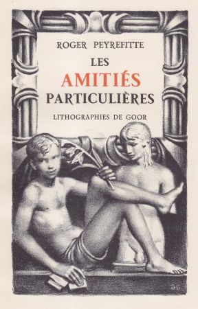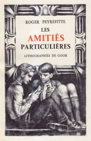 Les Amitiés Particulières by Roger Peyrefitte is widely considered one of the classic pieces of romantic schoolboy fiction. It is the story of an older and a younger boy in a French boarding school who become romantically attached and about the tragedy that ensues when the affair is discovered and mishandled by the priests who run the school. The 'affair' actually is no more than some passionate letters and a couple of stolen kisses. It was translated into English and made into a film and in 1953 Flammarion published a de luxe edition in two volumes with 24 lithographic illustrations by Peyrefitte's favourite illustrator Gaston Goor (1902 - 1977).