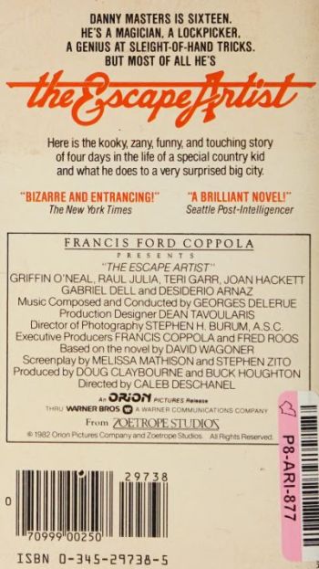 ''THE ESCAPE ARTIST'' appears to be an extended but preliminary sketch for an adventure-fantasy film that has yet to be made. Based on a novel by David Wagoner, it's the story of a worldly wise teenage orphan boy, Danny Masters (Griffin O'Neal), who runs away from his grandmother's house to win fame as a magician and, in the process, to clear his father of a crime that is never made clear.