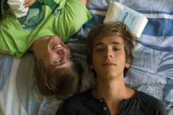 Ich zog mich langsam aus seinem Hintern zurück, damit er seine Beine senken konnte. Und dann legte ich mich ganz auf ihn. Er hatte einen verträumten Ausdruck im Gesicht. Gesichtsausdruck. „Fürs erste Mal war das ein fantastischer Fick – du bist ein Naturtalent.“