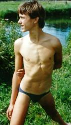Darren was 17 years old and a senior in our school. He was also captain of the school swim team. This guy was built like a Greek god - 6 feet 2 inches tall, blonde and tanned. His whole body was in perfect proportion - wide swimmer’s shoulders, narrow waist, a great sixpack and muscular legs and arms - but athletic, not like a body builder. He also looked like one of the Brewers when they were 17 years old (a set of my favourite pics from the net are the 17 year old Brewer twins). I have seen Darren’s furniture in the shower. I knew that he musta been first in the queue when they were handin those things out. He was leading the hike and was going to be the main man for the week.