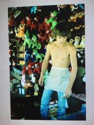 Während er wartete, betrachtete sich Westin in den Spiegeln des Karussells. Nachdem er eine Weile herumgelaufen war, waren seine Shorts ein Stückchen tiefer gerutscht. Dass er ohne Hose herumlief, war unübersehbar, und dass seine Haarfarbe natürlich war, bestätigte ein Hauch blonder Schamhaare, wo der fehlende Knopf sein sollte.